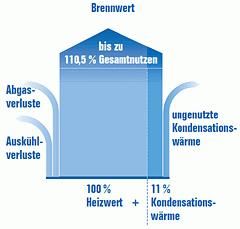 Bezogen auf den klassischen Heizwert einer Heizung entstehen so gesehen Nutzungsgrade von über 100% - im Fall des Logamax plus GB162 sogar bis zu 110,5%.